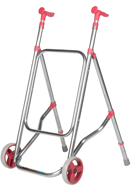 Este andador se pliega fácilmente, levantando los tubos que llegan desde la parte delantera a las patas. Está disponible en siete colores distintos entre los que elegir, cuenta con empuñaduras ergonómicas regulables en altura en 5 posiciones. Dichas empuñaduras pueden sustiturse por unas de goma o incluso por una estructura en forma de arco.